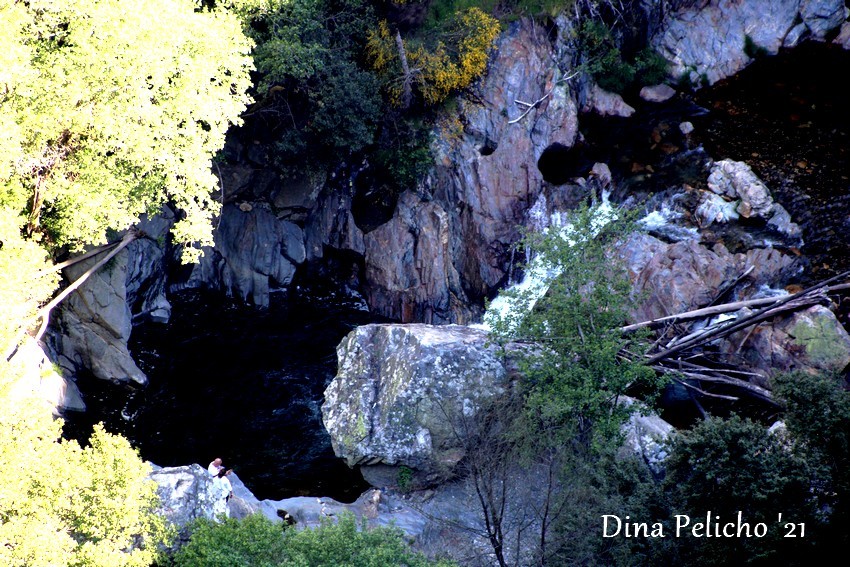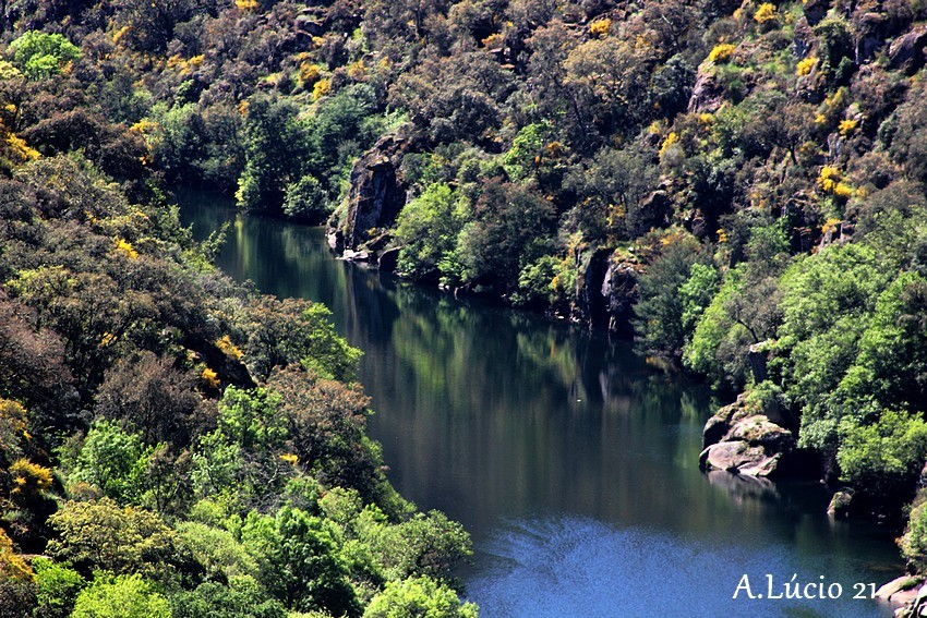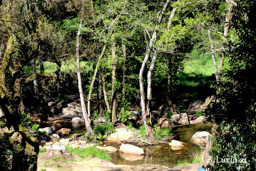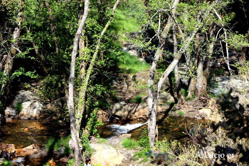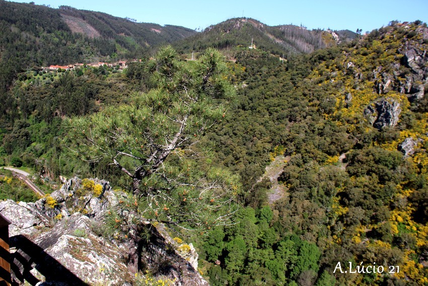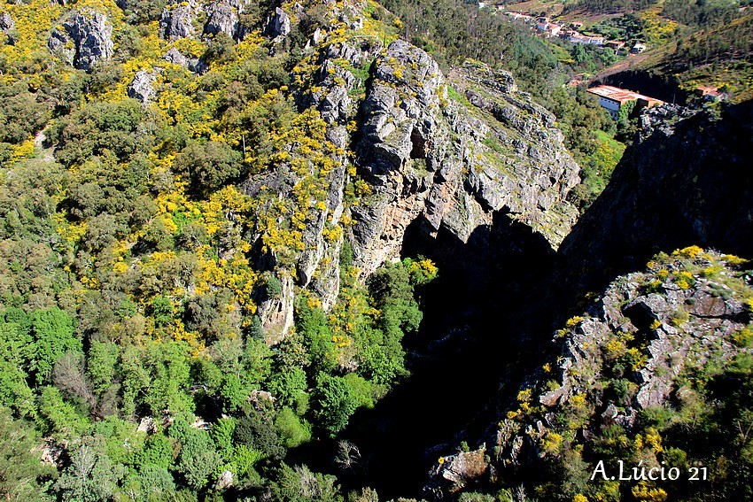 Do Miradouro é possível verificar a enorme dimensão do espaço, os penhascos plenos de vegetação e a caírem a pique em direcção ao ribeiro que serpenteia bem lá no fundo, por entre as rochas e os troncos das árvores até atingir o espaço magnífico e idílico da praia fluvial. Uma cascata faz as delícias dos mais atrevidos (sim porque a cristalina água é bem fresquinha).