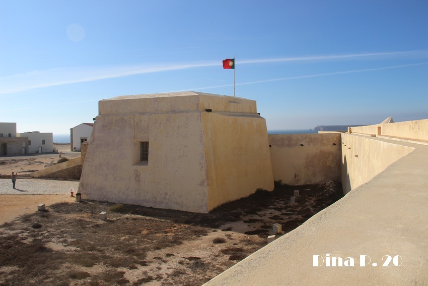 Para atingirmos o 4º e último ponto desta visita de fim de semana, mais uns 3 ou 4 quilómetros para sul e lá chegámos à Fortaleza de Sagres, local icónico e de grande significado histórico, quase inexpugnável atendendo á sua localização geográfica e com uma magnífica e acolhedora baía a sul e uma praia a norte para os amantes do surf. De acordo com o sítio dos monumentos ao Algarve “Sagres, zona de cruzamento de rotas entre o mar Mediterrâneo e o oceano Atlântico, porto de pescadores e comerciantes de várias nações, mas também, zona assolada por corsários. A imponente fortificação de Sagres é o prolongamento humano do rochedo natural e foi durante séculos a principal praça de guerra de um sistema defensivo marítimo geo-estratégico.